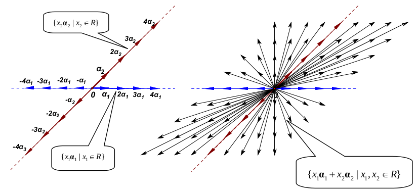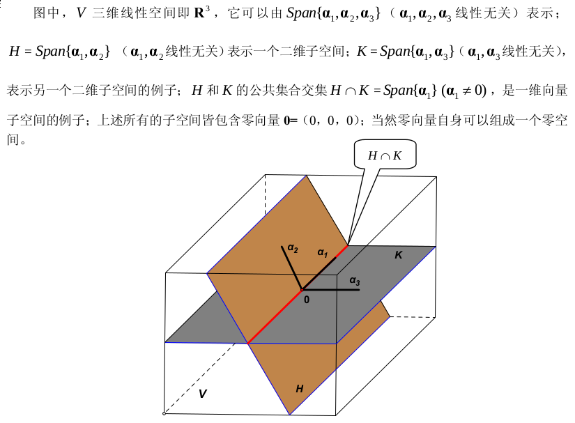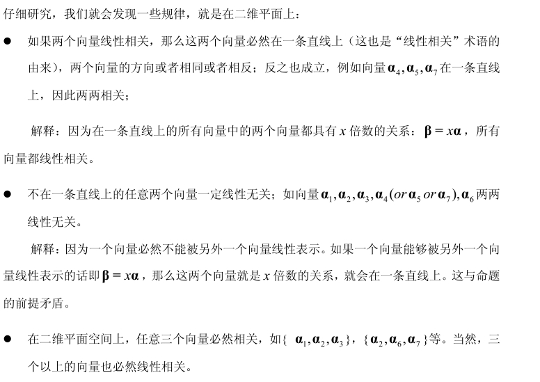 使用向量空间的概念,我们可以有一个更全面的关于线性相关的几何意义的结论:
